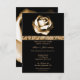 Invite a los huéspedes a su próxima ducha nupcial con este atractivo diseño de invitación con un rosa dorado y una pancarta floral sobre un fondo negro. El texto de personalizable le permite alterar las fuentes, cambiar los colores y tamaños del texto según desee. También está disponible un papel boda que coincide con este diseño.
