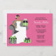 Invite a los huéspedes a una ducha de matrimonio con estilo, con esta invitación moderna y divertida a la ducha de novia. Esta invitación rosa y verde incluye a una novia afroamericana sentada en una silla rodeada de regalos.