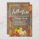 Invitación a la ducha de novia en otoño rústico. Fondo De Madera Rústica. Invitación a la ducha nupcial de otoño. Flores Florales de calabaza acuarela. Fondo retro de cosecha en burlap.