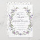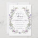Sofisticada invitación para una ducha de novia, que exhibe exquisitas acuarelas representaciones de flores silvestres de lavanda violeta, ideal para una celebración rústica en primavera o verano.