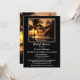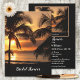Invitación a una ducha de novia con puesta de sol en una playa tropical con palmeras. Puedes elegir tu propio fondo en el lado frontal. Hermoso si planeas un boda tropical.