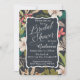 Flores tropicales de época sobre un fondo marino oscuro, y textos caligráficos blancos crean una impresionante invitación a la ducha nupcial. Por favor, tenga en cuenta que todo el texto del nombre (de la novia) es editable; la versión superior (por favor, únase a nosotros para una ducha de novia en honor a) es fija y no se puede cambiar. *Material gráfico proporcionado por GraphicBox