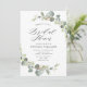 escritura negra y vegetación de eucaliptoPuede cambiar la redacción, el tamaño del texto, los colores y el tipo de letra en esta invitación a la ducha de novia.
