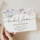 Hermosa invitación a la ducha de la novia con vegetación acuática y flores violetas violetas. Personalizar con su información para que la novia sea.