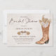 Boho Floral Western Boot Bridal Shower Invitation Bohemia estilo bohemio invitación a ducha de novia occidental con una bota de color agua y algunos arreglos florales secos con pampas hierba. Ideal para una novia a la que le gusta todo el estilo occidental y bohemio.