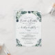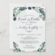 Invitación a una ducha de novia Brunch y Bubbly con agua salada verde y polvorienta eucalipto azul-verde y moderno título de guión escrito a mano y nombre respaldado con un lavado de acuarela. CAMBIOS: Cambia el estilo personalizado del tipo de letra del texto, color, tamaño y ubicación para un aspecto personalizado haciendo clic en PERSONALIZAR MÁS AÚN en la parte inferior de la sección PERSONALIZAR. Póngase en contacto con el diseñador a través de Zazzle Chat o makeitaboutyoustore@gmail.com si desea modificar este diseño o en otro producto.