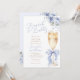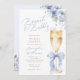 Celebre la futura boda con esta invitación a la ducha con un brunch y un bubbly Blue Bridal, con suaves flores de color azul polvoriento y una delgada proa azul atada alrededor de una copa de champán dorada. Este diseño único combina elementos botánicos románticos con un toque de brillo, perfecto para una celebración de primavera o verano de moda. El guión elegante añade un encanto atemporal, mientras que el detalle animado introduce un toque festivo y moderno. Ideal para una sofisticada ducha nupcial llena de alegría, amor y prosecco.