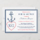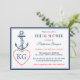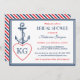 Invitación a la ducha casera con ancla y amor. Decorado con rayas en la parte posterior de la tarjeta. Personalizar el monograma dentro del corazón para su nombre o iniciales de parejas. Personalice esta invitación para otra ocasión para bodas en la playa, fiesta de compromiso, ducha de bebé, aniversario y demás.