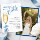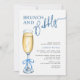Celebre el estilo de la futura novia con esta elegante invitación a la ducha de novia "Brunch and Bubbly", que incluye una flauta de champán color agua atada con una suave cinta azul. Perfecto para un evento de la temática Algo Azul, este diseño combina la sofisticación lúdica con el encanto moderno. Personalizable completo para su día especial.