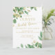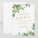 Esta invitación a bañarse en una ducha con flores de eucalipto de color verde y dorado le da un toque botánico moderno a su evento. Con una exuberante vegetación y sutiles acentos dorados, es una elección magnífica para las novias que aman la elegancia natural con un toque de glam.