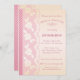 Este suave y delicado encaje floral de estilo rosa rosa y marfil vintage con rayas de novia o de ducha de boda tiene un aspecto amarillo o envejecido de encaje floral con un borde de vieiras sobre un fondo rayado rosado que sería perfecto para una ducha de lencería, un fiesta de té nupcial o un almuerzo, o para un evento de inspiración victoriana. El texto y el papel son todos personalizables. Se muestra aquí en papel básico. NO usaría oro metálico o papel plateado pues ambos oscurecerán severamente/alterarán el color de la tarjeta. ***TENGA EN CUENTA que si cambia el tipo de letra o el tamaño del tipo de letra, puede alterar la forma en que se imprime la invitación. Imprimirá la forma en que lo ve en su monitor, por lo que si tiene problemas de alineación o de tamaño, póngase en contacto conmigo para obtener ayuda antes de realizar el pedido. No veré tu invitación una vez que lo pidas, y Zazzle NO editará nada (tipos, alineación, etc.). Si necesita ayuda o desea cualquier otro elemento que coincida, envíe su solicitud a niteowlstudio@gmail.com.