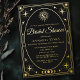 Añade un toque mágico a tu ducha de novia. Esto invita a presentar un diseño inspirado en el tarot en Relieve metalizado REAL con un elegante marco oval, un sol radiante y luna contra un fondo negro. Perfecto para una celebración tan encantadora como la novia.