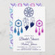 Sorprenda a sus huéspedes con esta invitación bohemia a la ducha de novias, que incluye elegantes catcher de ensueño con un fondo blanco. Simplemente agregue los detalles de su evento en esta plantilla fácil de usar para convertirla en una invitación única. Voltea la tarjeta para revelar un lindo patrón de atracción de sueños en la parte trasera de la tarjeta.