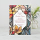 Fije el tono de su ducha de novia con esta invitación audaz y moderna con vibrantes florales de vidrio. Diseñada para novias que aman el arte y los toques únicos, esta invitación es perfecta para celebraciones coloridas y contemporáneas. El personalizable total le ofrece una manera impresionante de mostrar los detalles de su evento e impresionar a sus invitados.