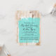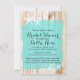 Hermosa invitación a la ducha de novia con peces estrella sobre el dorsal turquesa y fondo de madera. Personalizable completo, haga clic en el botón Personalizar para cambiar el color, el tamaño y el estilo del tipo de letra. También puede eliminar, reorganizar o agregar más texto que se ajuste a sus necesidades.