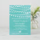 Invitación divertida y caprichosa con brillantes luces de cuerda sobre un rústico fondo de color verde azulado. Hay otros colores disponibles.