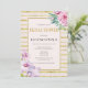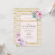El efecto purpurina dorado tiene rayas en rosa muy pálido, con flores rosadas y lilas. Bonita papelería de verano para duchas de novias, bodas o cumpleaños. Se puede personalizar todo el estilo, tamaño y color del texto. Muchos más diseños y papelería gratuita en nuestra tienda.