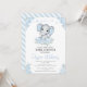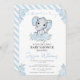 Agua linda tarjeta de invitación para bebé elefante azul claro floral. ¡Un poco de cacahuete está en camino!