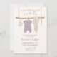 Esta invitación de estilo bohemio incluye una presentación muy querida de los artículos para bebés.