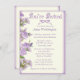 La invitación a la ducha incluye un ilustracion de la flor silvestre Wild Sweet William sobre una lavanda y fondo de gradiente blanco. El texto personalizado "Estás invitado" es una imagen y puede ser borrado y reemplazado por tu elección de texto. El arco morado es también una imagen y se puede quitar si se desea. El texto de ejemplo es una sugerencia de diseño. Agregue su propio texto, estilo de fuente, tamaño y color. Utilice la parte posterior para obtener texto adicional si es necesario.