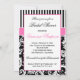 Esta invitación a la ducha nupcial de damasco a rayas blancas y negras a la moda se acentúa con rosa caliente. Es totalmente personalizable. Si hay otros artículos que necesita para hacer su evento extra especial, como tarjetas de agradecimiento, tarjetas de número de tabla, tarjetas de fecha, imanes o bolsas de regalo, envíe su solicitud a niteowlstudio@gmail.com. Si desea que esta invitación tenga formato para un boda, o si desea que se muestre en otra combinación de colores, envíe la solicitud a la dirección anterior.