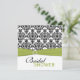 Esta invitación a la ducha de matrimonio damasco blanco y negro con un lazo FAUX verde pera y un broche con joyas coincide con las invitaciones de boda que se muestran a continuación. Todo el texto es personalizable, al igual que la elección del papel. Si hay otros elementos que necesita para hacer su evento especial, envíe su solicitud a niteowlstudio@gmail.com. Si desea esta invitación en otra combinación de colores, envíe la solicitud a la dirección anterior.