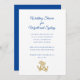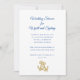 Boda náutico o ducha de novia. Tarjetas blancas con texto azul marino y dos anclas doradas para representar a la pareja. El tipo de letra del guión superior es mayor para el tipo de evento y para quién es. El resto del texto se agrega en un párrafo para incluir tantas líneas como sea necesario.