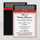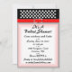 Invitación a la ducha nupcial con cinturón rojo y negro con puntos de polka blanco.