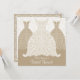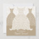 Estilizado vestido de novia y dama de honor vestido de blanco y taupe. Personalizar con su propio texto. ilustracion original de pj_design. El Bridal Invitation ofrece un estilizado vestido boda y trajes de dama de honor decorados con aves, viñas y bayas. Decorada con un fondo de amortiguador.
