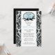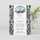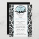 Comience su evento con nuestra invitación a la ducha de novia con un hermoso marco oval con pájaros sobre ramas con damasco blanco y negro con un toque azul claro. Combinación de colores blanco y negro a la moda. Sólo personalizar nuestra invitación con la información de su boda y todos están listos para ir
