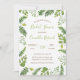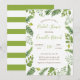 Invitación moderna con tema botánico con helechos y hojas. Diseño airoso para una novia de moda. Este tema es perfecto para un evento con un tema de jardín, botánico, veraniego u orgánico. Las cartas son elegantes con un toque lúdico. La parte de atrás tiene un patrón de rayas para coordinar el verde. Un diseño elegante y de moda que gustará a los novios con un gran estilo.