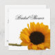 Una elegante ducha nupcial invita con una foto de un solo girasol en la parte delantera. Fondo blanco sólido. La información del evento está en la parte posterior. Contáctenos si desea cualquier otro producto boda o de girasol nupcial.