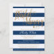 Perfecto para una ducha náutica o de temática playera, o para cualquier boda con acentos azul marino y dorado. Faux purpurina texto y franjas audaces hacen de esta una elección elegante y única para su próxima celebración de la ducha nupcial! ¡Mira la linda ancla purpurinoso en la parte trasera! Puedes moverlo, mantenerlo o eliminarlo.