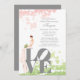 Comience su evento con nuestra novia de moda sentada en la palabra amor puesta en un campo de corazones fondo en una invitación rosa, verde y gris a la ducha de novia. Solo personalizar nuestra invitación con la información de tu boda y estás listo para ir. Disponible en otras combinaciones de colores en nuestra tienda en www.celebrateitweddings.com. Consulte nuestras notas de agradecimiento, pegatinas y botones de novia en nuestra tienda