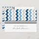 Bridal Shower invitaciones en elegante azul marino oscuro, retro gris y blanco y chevron casual zigzags estampado, moda y femenina, personalizable con los detalles de la ducha. También disponible en tarjetas de agradecimiento e invitaciones para la fiesta nupcial.