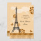 Elegante y de moda, de temática francesa. La Torre Eiffel está decorada con nubes, rosas y mariposas en una paleta de color marrón que le confiere un aspecto vintage. Las rayas y los rosas dan a este diseño un aspecto moderno. Invitación romántica perfecta para una novia que planea una boda de destino, o con gusto para viajar. Encuentre productos coincidentes en esta tienda.