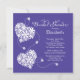 Empiece su elegante ducha nupcial con la temática del corazón con nuestra moderna y divertida invitación al corazón en un fondo azul violeta. Voltea la invitación para encontrar un equilibrio con el corazón. Visite nuestra tienda para ver nuestro popular diseño de los corazones de las flores de margarita en una gran variedad de populares colores bodas.