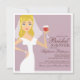 Una novia rubia de ojos azules bonito ofrece a la familia y a los amigos una copa de vino en esta moderna invitación a la ducha nupcial. Antecedentes populares lila morada. Perfecto para una ducha de temática vinícola o para una novia enológica. También está disponible:
