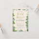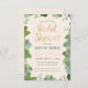 Esta invitación a una ducha de personalizable con una superficie de 3,5" x 5" (pequeña) muestra un borde ilustrado de flores verdes, grises y azules con un fondo de color crema (que puede cambiarse a su gusto). El texto "Bridal Shower" está en una fuente dorada y moderna. El nombre de la futura novia y los detalles del evento se pueden personalizar para su evento especial. El reverso es un color crema a juego (también cambiable) con un patrón dorado de quatrefoil.