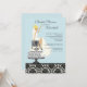 Comience bien su evento con nuestra moderna invitación a la ducha de novias con una novia rubia sentada en un pastel de boda damasco de 3 niveles. Solo personalizar nuestra invitación con la información de tu boda y estás listo para ir. ©Jessica Weible