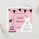 La invitación a la ducha de novias Bonito y monada personalizada Shoe For Thought incluye una torta boda con un solo zapato, vestido de boda y pancartas en un fondo rosado de punto polka y áreas donde se puede agregar el nombre del invitado de honor, y detalles de la ducha de novia incluyendo fecha, hora, ubicación, información de RSVP, y más.