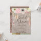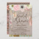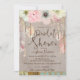 Diseño de la tribu bohemia con hermosos motivos florales y plumas para esta encantadora invitación rústica a la ducha de novias.
