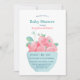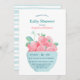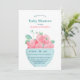Invitación a la ducha para bebés con adorables fresas en una taza, estilo sketch de acuarela.