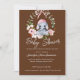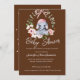 Un adorable elefante bebé en una invitación de Baby Shower con flores.
