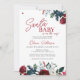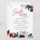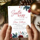 Invierno moderno Santa Bebé sobre la forma en que los Navidades temáticos chica o niño de la fiesta de la ducha de bebé con hermosas acuarelas florales rojas y blancas con ramos de pino y follaje estacional verde con un moderno guión de tipografía escrito a mano de moda. ++++++++++++++ Fácil de personalizar con tus detalles! +++++++++++++++ La invitación es adecuada para Navidades de invierno elegantes fiestas de ducha de neutro para el sexo.