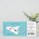 Una invitación de boda divertida pero elegante en un estilo de tarjeta de embarque/entrada para parejas casadas en el extranjero en la isla italiana de Sicilia, que se muestra en una silueta de mapa blanco sobre azul verde azulado pálido con corazones de amor rojo dulce, silueta de avión y forma de corazón agitado. Al revés hay un espacio para la foto y los detalles de contacto/RSVP
