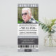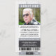 Servicio conmemorativo de entradas deportivas grises y negras o invitaciones al funeral. Están diseñados para parecerse a un boleto deportivo para celebrar el evento de la temporada. Los detalles del texto se pueden personalizar. También puede insertar su propia foto o foto.