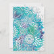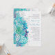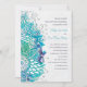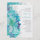 Una bella y abstracta floral con tonos azules y verde azulados sobre un fondo floral abstracto blanco. Ideal para bodas de verano.