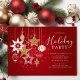 Invite a amigos, familia o compañeros de trabajo a su celebración de vacaciones con esta elegante invitación a fiestas de oro y rojo. Con estrellas doradas y blancas, adornos y copos de nieve en un rico fondo rojo, este diseño atemporal captura a la perfección el calor y el brillo de la temporada. Ya sea que esté organizando una cena para Navidades, una fiesta de oficina o una reunión de cócteles festivos, esta invitación al personalizable le agrega el toque perfecto de temporada. Imprimido en papel de alta calidad con colores vivos y un acabado profesional, es una hermosa manera de compartir su alegría de vacaciones. Personalice con sus detalles del evento, incluyendo fecha, hora, ubicación, información de RSVP, y más, para crear una invitación tan única como su celebración de vacaciones.