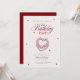 Esta invitación de cumpleaños número 40 al estilo retro muestra un pastel de corazón vintage estilizado con abundante decoración, guirnaldas y cerezas, sobre un fondo de papel texturizado. Los tonos suaves de rosa, rojo y burgundy dan a este diseño un toque moderno. Personaliza con los detalles de tu fiesta para una invitación de 40 años que marca el tono para un evento hermoso (y bastante increíble).